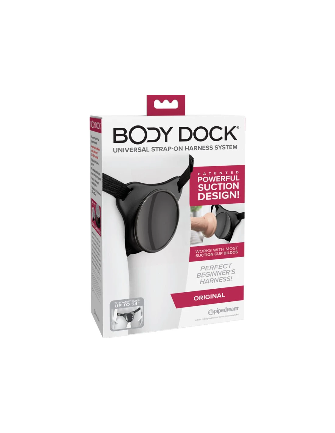 El patentado Sistema de Arnés Universal Body Dock lleva el juego con arnés a un nivel completamente nuevo! Es tan simple como adjuntar la ventosa a su dildo o vibrador favorito en la placa de acoplamiento, mientras que las correas de nylon se ajustan fácilmente a la mayoría de tamaños y tipos de cuerpo. ¡Sin anillos. Sin broches. ¡Sin problemas! Lo mejor de todo es que funciona con la mayoría de los dildos disponibles en el mercado hoy en día, incluidos algunos que quizás ya tenga. ¡Cambiar su accesorio de arnés favorito nunca ha sido más rápido o fácil!